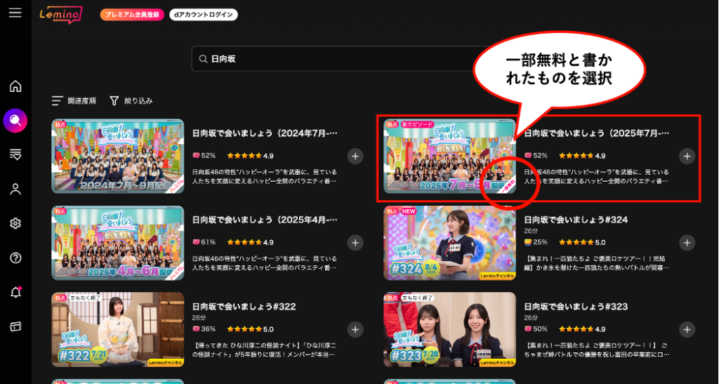 - Leminoは会員登録は基本不要(docomoユーザーで無くても見れます)