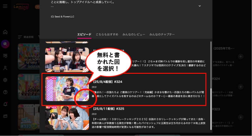 | 2 | ネット | Lemino(無料) | 放送終了2週目のみ | 無料 | こちら | |