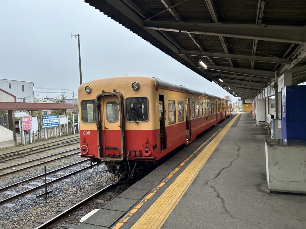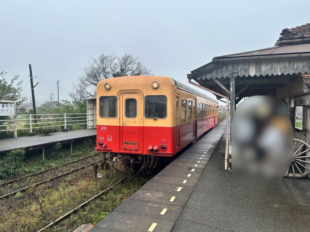 跨線橋を登り、小湊鐵道の乗り場まで行くと、そこで待っていたのは、昔懐かしい気動車。昭和感じるノスタルジアな車両が走っていることに少し驚きました。