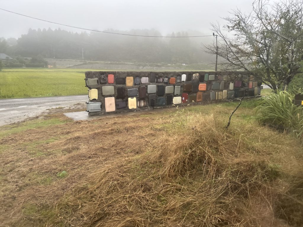 とはいえ、特にブログで書けるような面白い出来事があったわけではないので、上総川間駅の駅前にあったスーツケースが壁一面に貼られた謎のオブジェの写真を置いておきます。