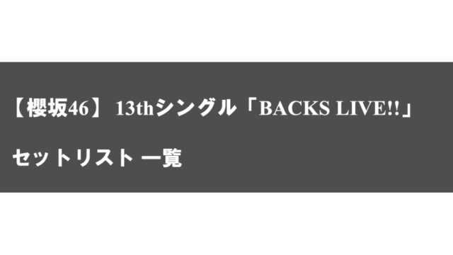 セットリスト(櫻坂46)【櫻坂46】13th Single「BACKS LIVE!!」セットリスト一覧