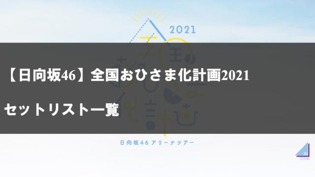 2021年9月から10月にかけて開催された日向坂46の全国アリーナツアー2021、通称「全国おひさま化計画2021」のセットリスト一覧になります。全国ツアー「全国おひさま化計画2021」毎年、日向坂46は秋にアリーナツアーを開催しています。...