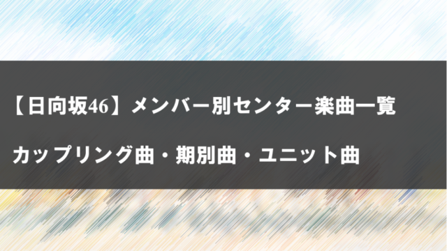 グループ基本情報【2025年最新】日向坂46メンバー別センター楽曲一覧|表題曲・カップリング曲・期別曲・ユニット曲 日向坂46メンバーのセンター楽曲一覧となります(ひらがなけやき曲・期別曲含む)。ユニット曲のセンターについては、それをセンターとしてカウントするのか、センターと呼ぶのか議論がありますが、一応掲載しています。なお、このような議論があるため、ユ... 2022.05.30グループ基本情報メンバー基本情報日向坂46解説・考察
