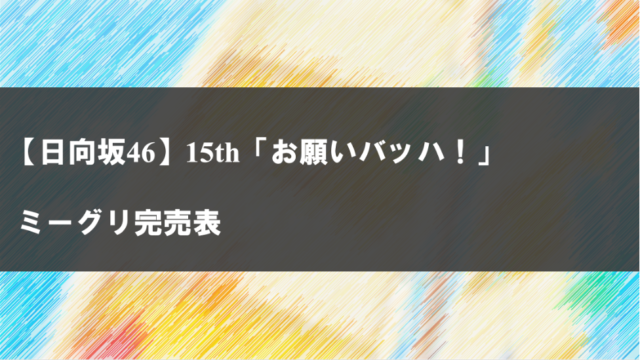 完売表(日向坂46)【日向坂46】15thシングル「お願いバッハ!」ミーグリ完売表 日向坂46の15th「お願いバッハ!」のミーグリ(個別トーク会)の完売表になります。「お願いバッハ!」のオンラインミート&グリート情報開催日時開催日時は次の6日間になります。2025年10月5日(日)2025年10月11日(土)2025年1... 2025.08.11完売表(日向坂46)日向坂46